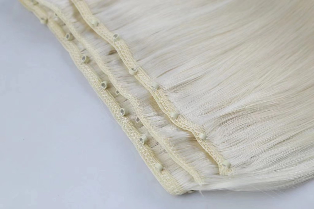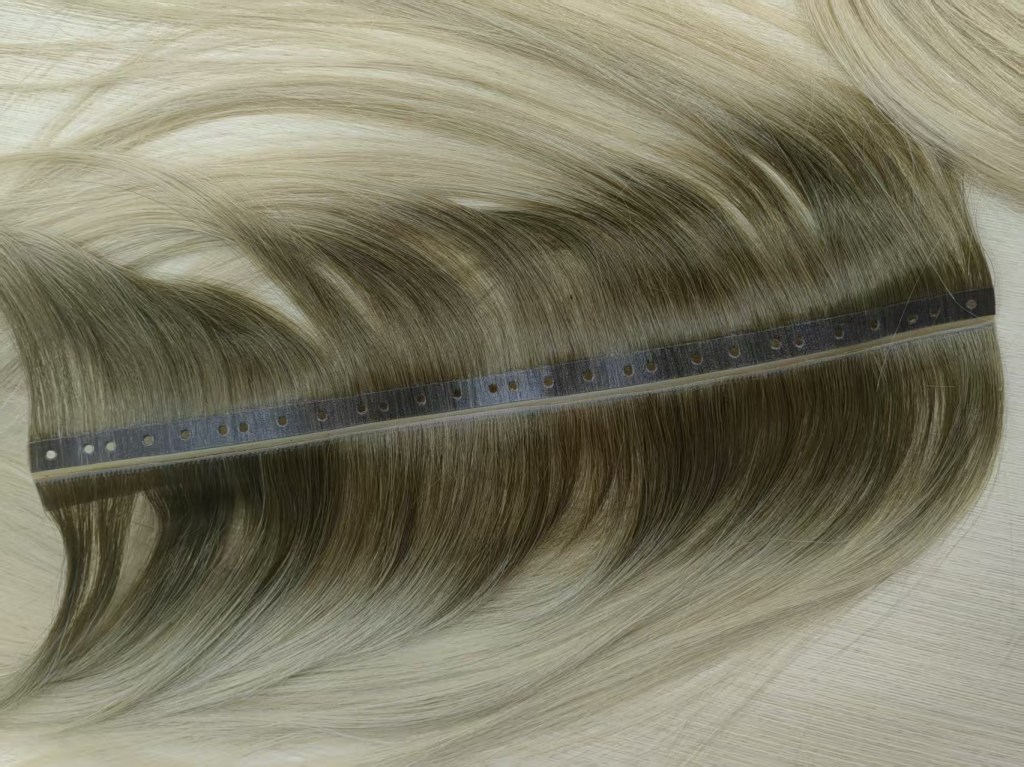 The middle Double side injected weft with holes, the invisible one, combines the technology of invisible tape hair and incorporates the micro ring. The hair can be locked with a ring in the middle of the hair, which is convenient for hair extension and re-use, and the concealment of the hair is also very strong.